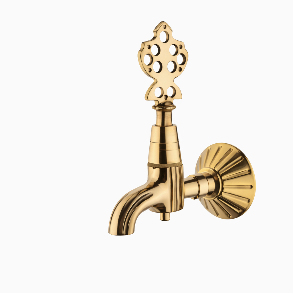 Geleneksel Osmanlı estetiğini yansıtan Sarı Renk Osmanlı Musluğu, parlak ve gösterişli tasarımıyla mekânlarınıza şıklık katarken sağlam yapısıyla uzun ömürlü kullanım sunar. Dekoratif Osmanlı motifli üst kol tasarımı ve klasik gövde formu sayesinde hem nostaljik hem de zarif bir görünüm sağlar.